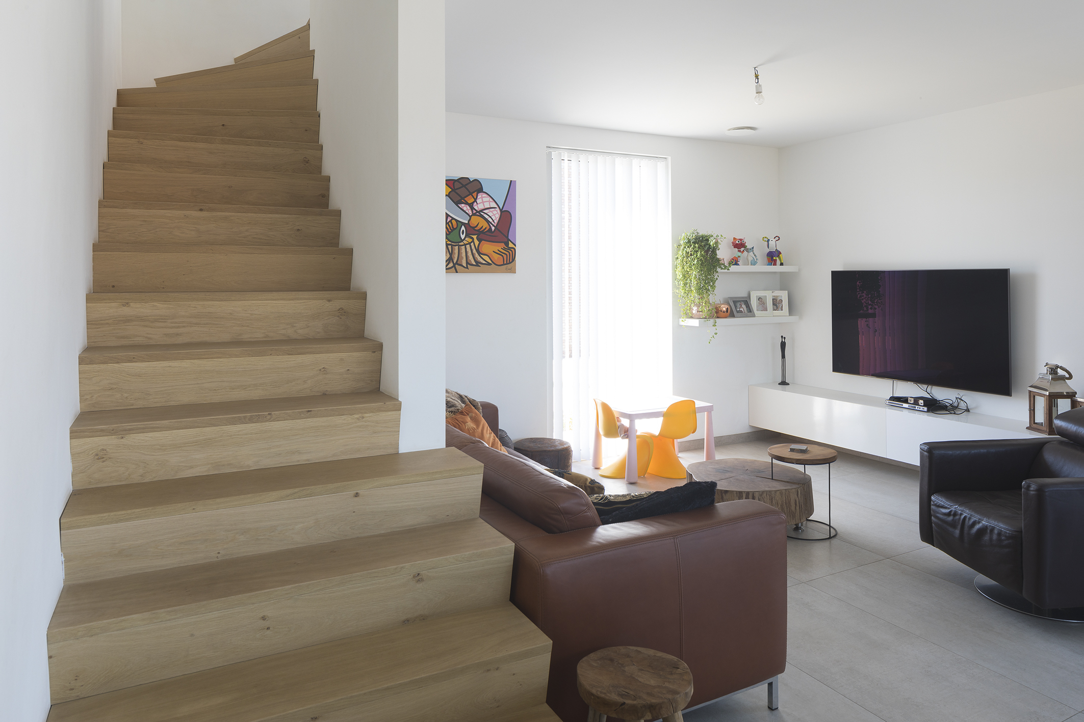 Vanbuiten supercompact en binnenin verrassend ruim. Enkele gewaagde keuzes van de bewoners draaiden heel goed uit en geven het interieur nog net iets extra's.