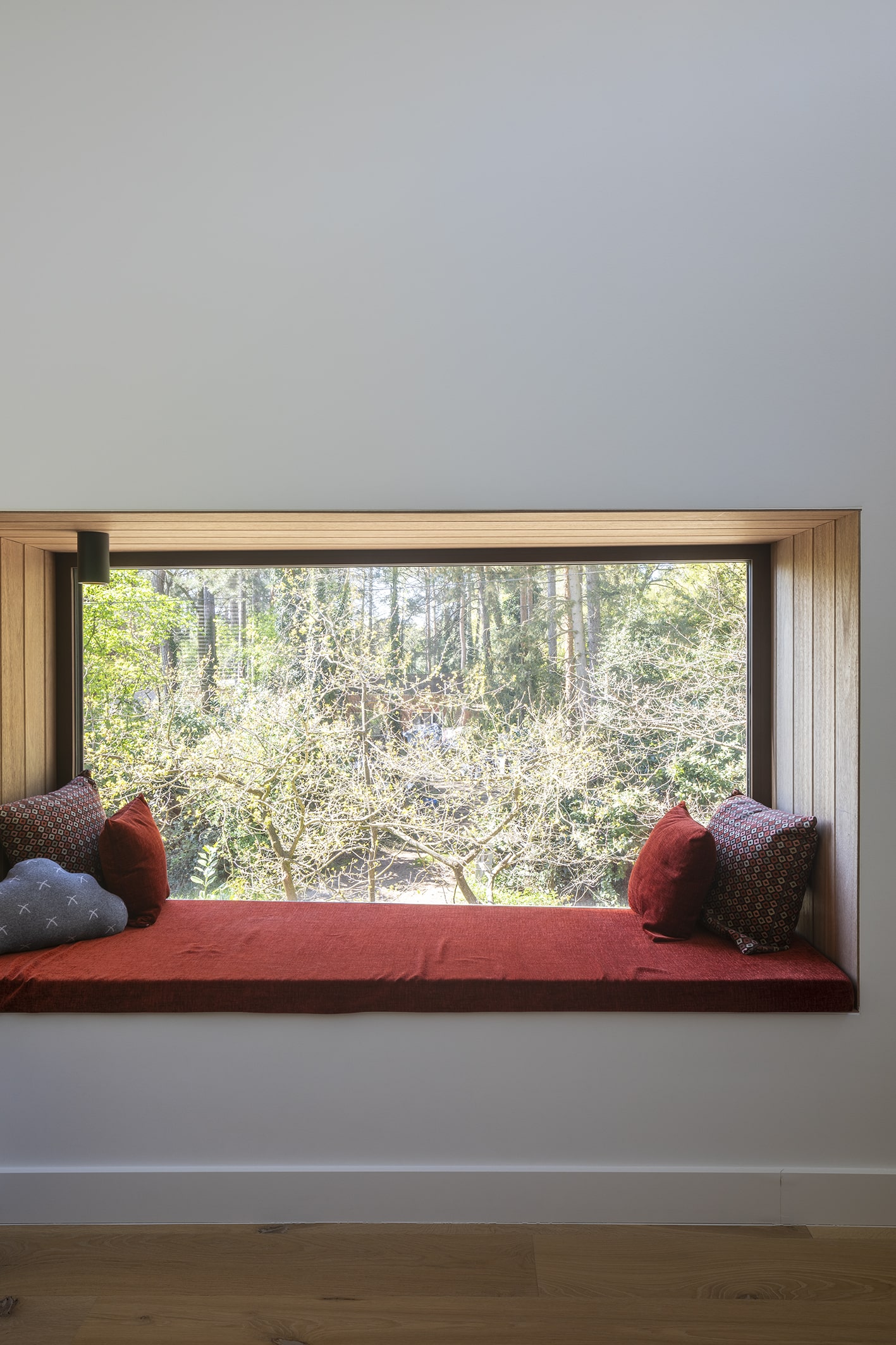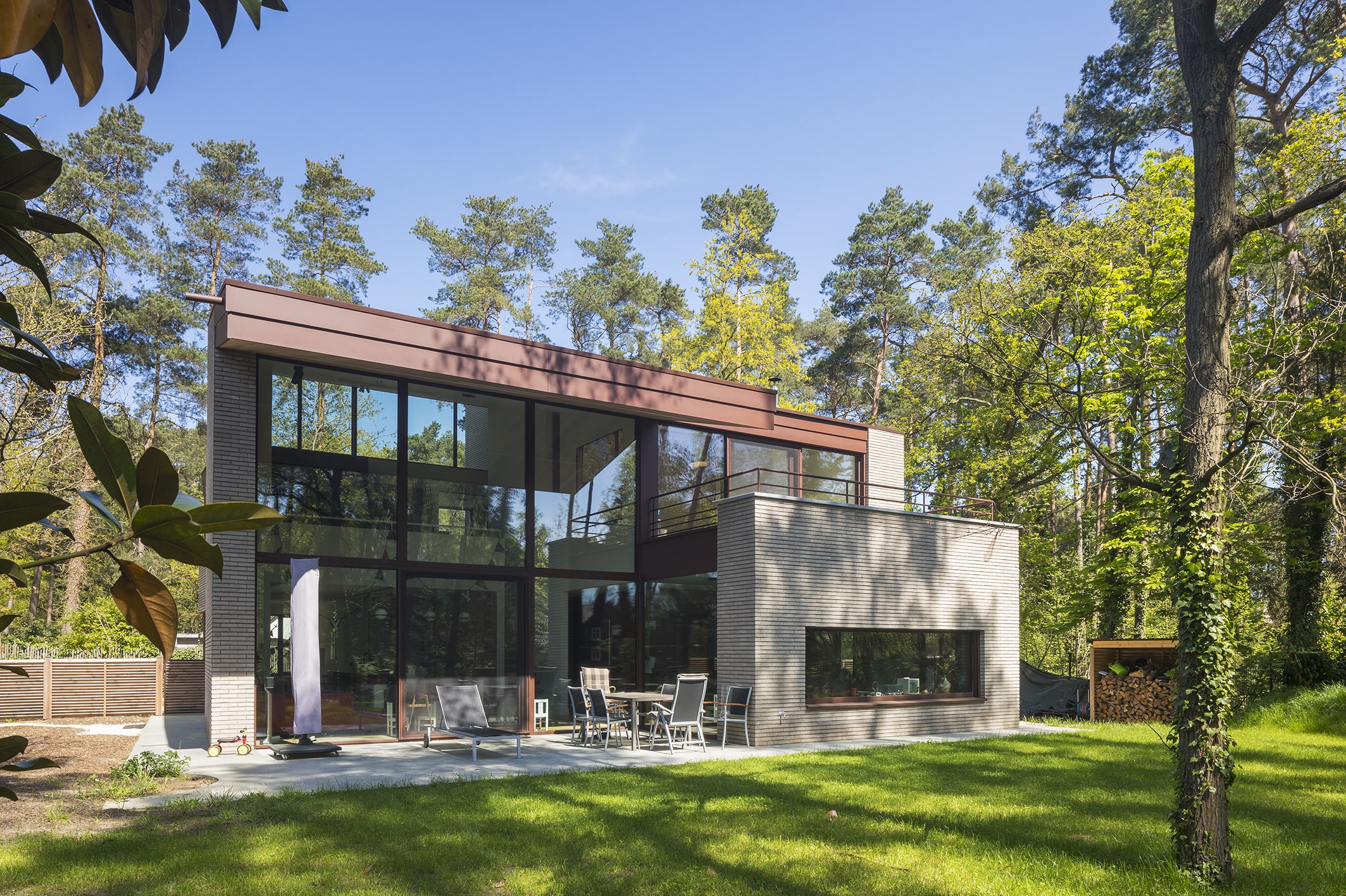 Deze uit de kluiten gewassen woning in de bossen van Grobbendonk heeft geen alledaagse indeling en dat maakt het resultaat des te aangenamer. Een eethoek van bijna 6m hoog of een slaapkamer met een plafond op 5 m kom je nu eenmaal niet elke dag tegen. Maar als je door de woning loopt geeft dat een heerlijk ruimtelijk gevoel.