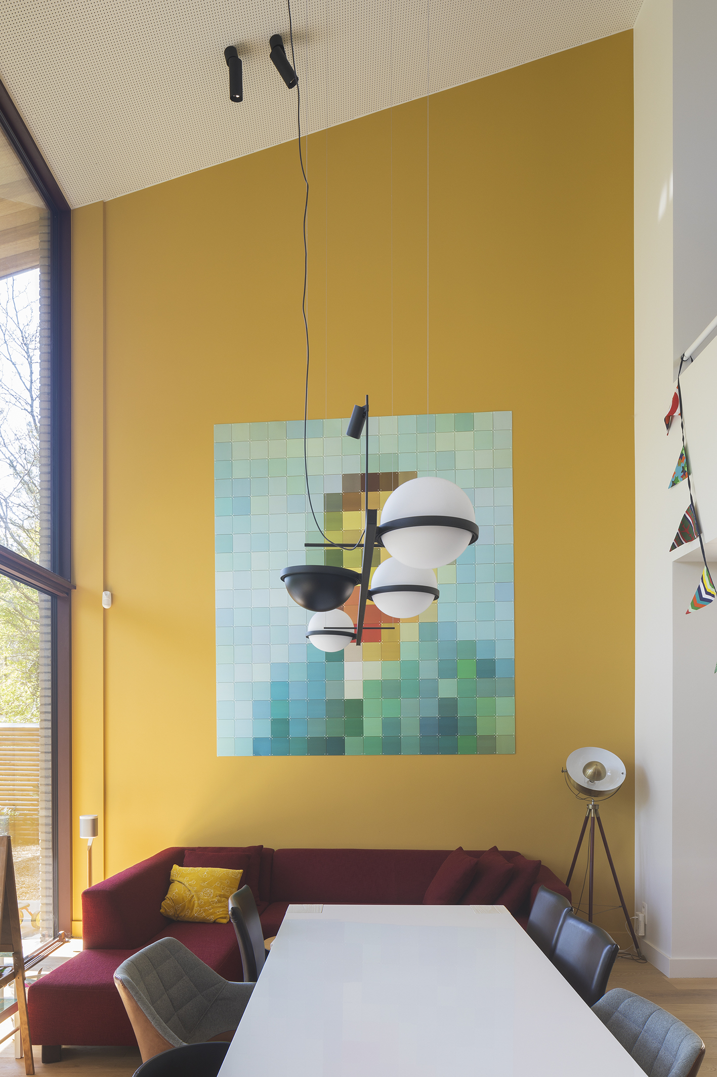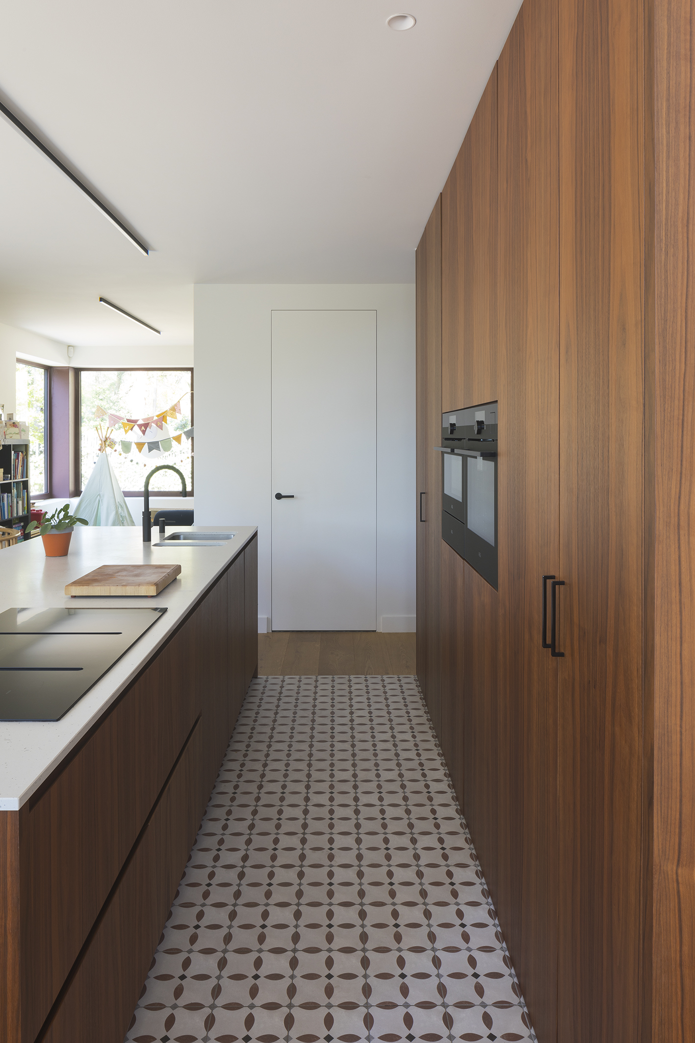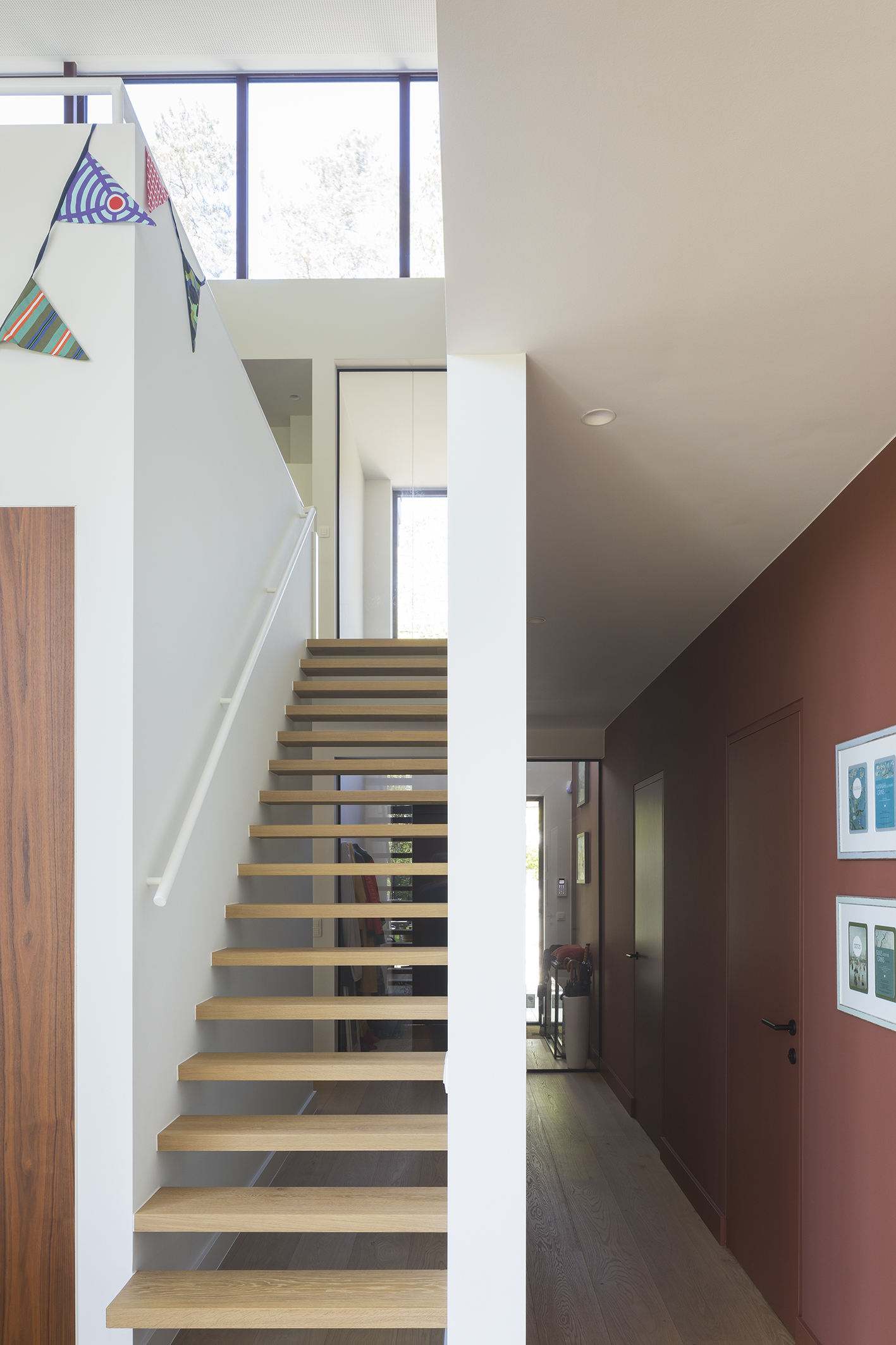 Bovendien heeft deze woning ook heel wat energetische troeven. Ondanks de grillige vorm konden we afkloppen op een S-peil van 27 en een E-peil van 6. Dit was o.a. mogelijk door het gebruik een geothermische warmtepomp, een bijzondere ecologische thuisbatterij en een energiemanagementsysteem. De energiewende is hier alvast ingezet.